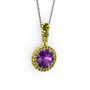 Ametist ve peridot 8 ayar altın kolye (40 cm gümüş rolo zincir)