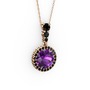 Ametist ve siyah zirkon 8 ayar rose altın kolye (40 cm rose altın rolo zincir)
