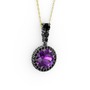 Ametist ve siyah zirkon 925 ayar siyah rodyum kaplama gümüş kolye (40 cm altın rolo zincir)
