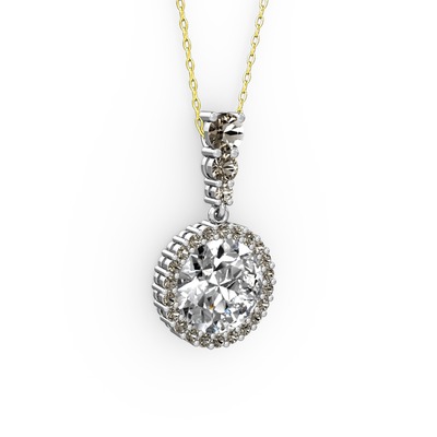 Beyaz zirkon ve dumanlı kuvars 18 ayar beyaz altın kolye (40 cm altın rolo zincir)