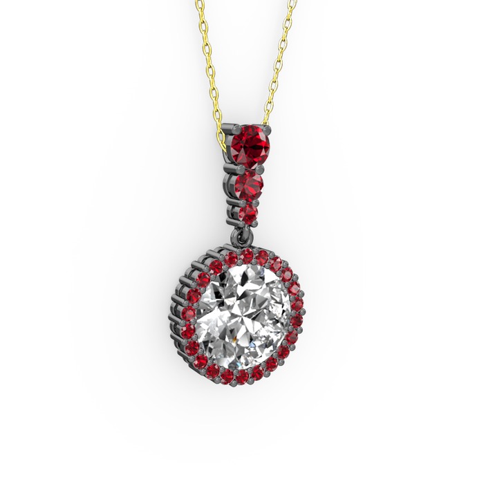 Beyaz zirkon ve garnet 925 ayar siyah rodyum kaplama gümüş kolye (40 cm altın rolo zincir)