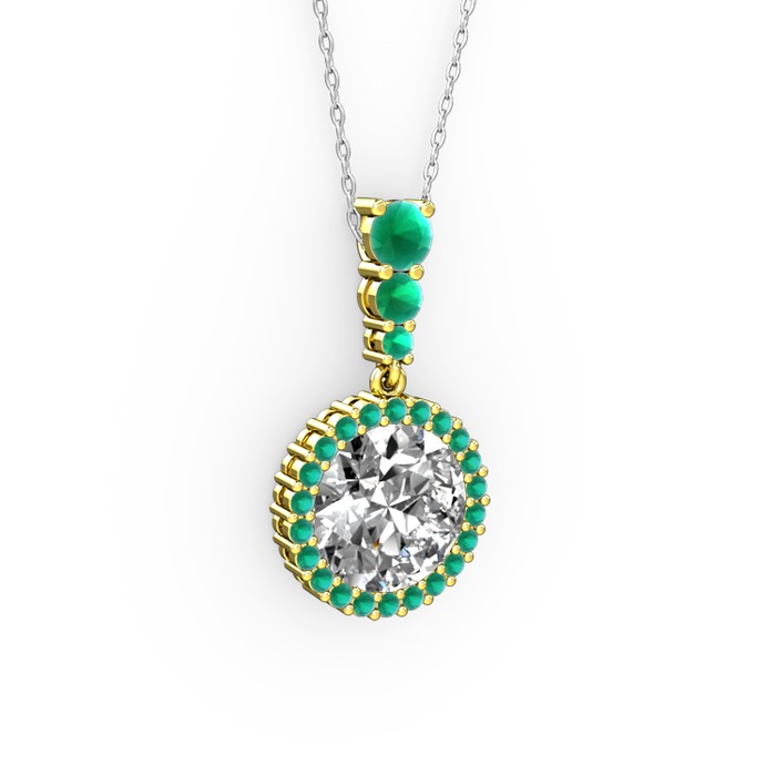 Beyaz zirkon ve kök yakut 8 ayar altın kolye (40 cm beyaz altın rolo zincir)