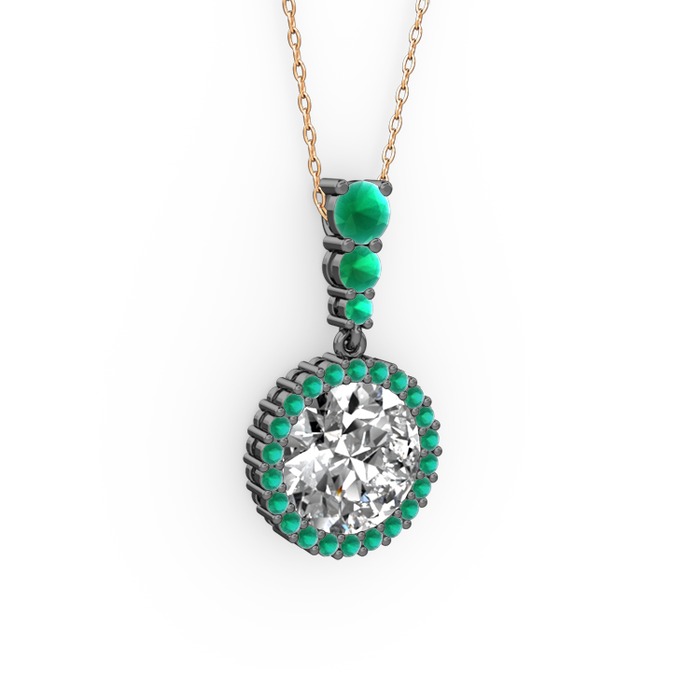 Beyaz zirkon ve kök yakut 925 ayar siyah rodyum kaplama gümüş kolye (40 cm rose altın rolo zincir)
