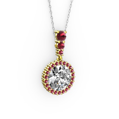 Beyaz zirkon ve kök zümrüt 14 ayar altın kolye (40 cm beyaz altın rolo zincir)