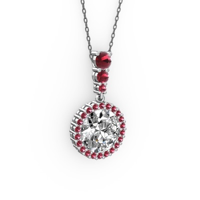 Beyaz zirkon ve kök zümrüt 8 ayar beyaz altın kolye (40 cm gümüş rolo zincir)