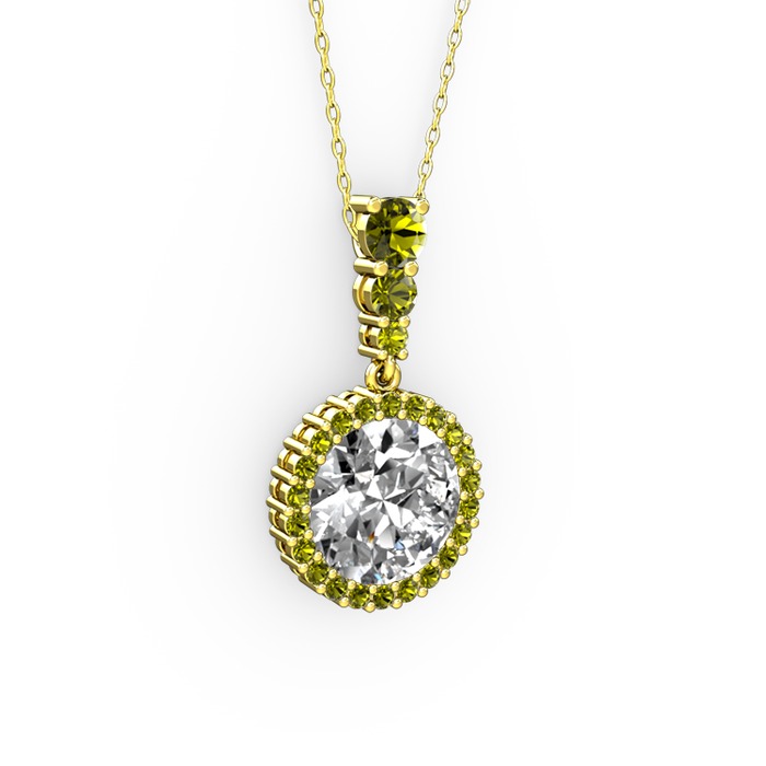 Beyaz zirkon ve peridot 8 ayar altın kolye (40 cm altın rolo zincir)