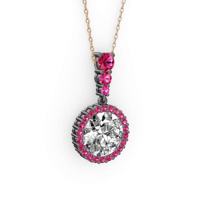Beyaz zirkon ve rodolit garnet 925 ayar siyah rodyum kaplama gümüş kolye (40 cm rose altın rolo zincir)
