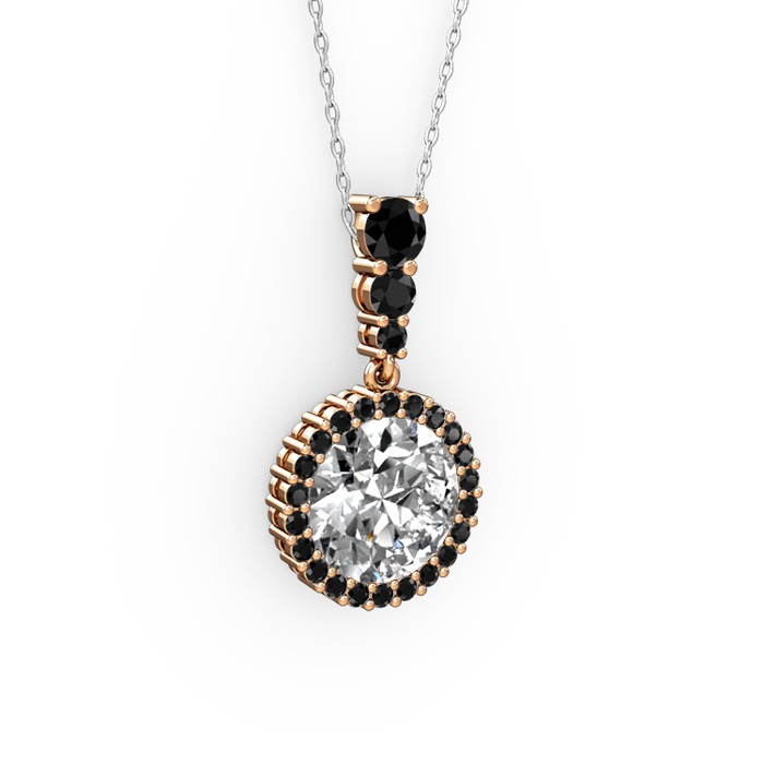 Beyaz zirkon ve siyah zirkon 8 ayar rose altın kolye (40 cm beyaz altın rolo zincir)