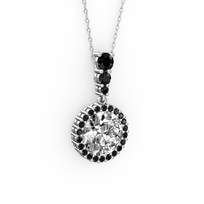 Beyaz zirkon ve siyah zirkon 925 ayar gümüş kolye (40 cm beyaz altın rolo zincir)
