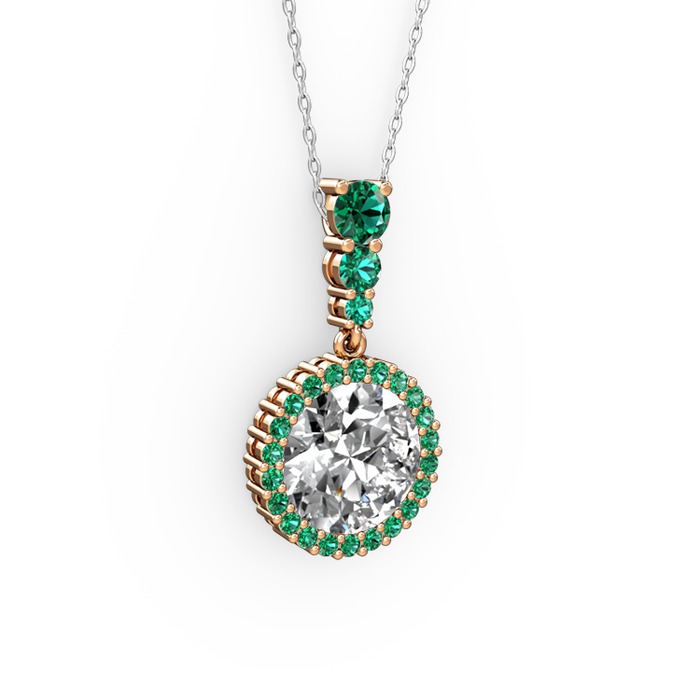 Beyaz zirkon ve yeşil kuvars 925 ayar rose altın kaplama gümüş kolye (40 cm beyaz altın rolo zincir)