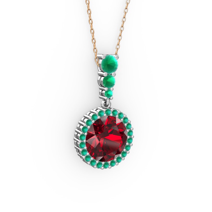 Garnet ve kök yakut 14 ayar beyaz altın kolye (40 cm rose altın rolo zincir)