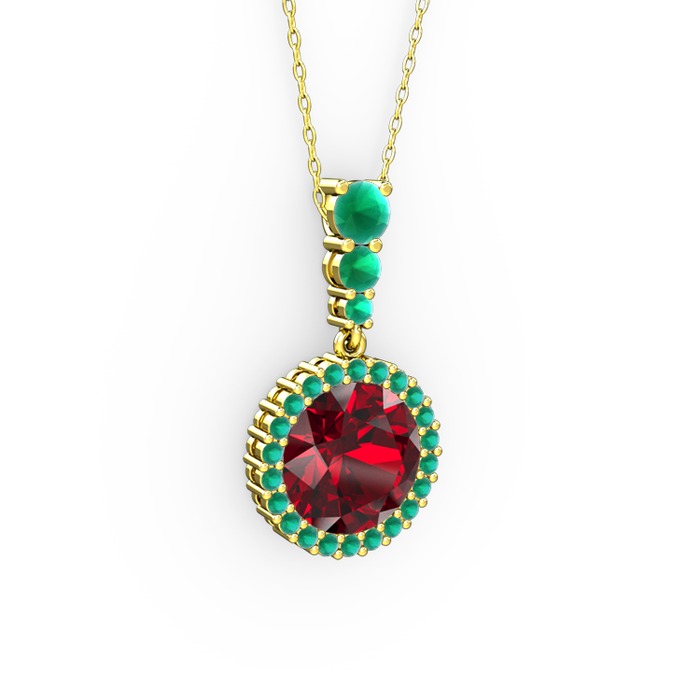 Garnet ve kök yakut 18 ayar altın kolye (40 cm altın rolo zincir)