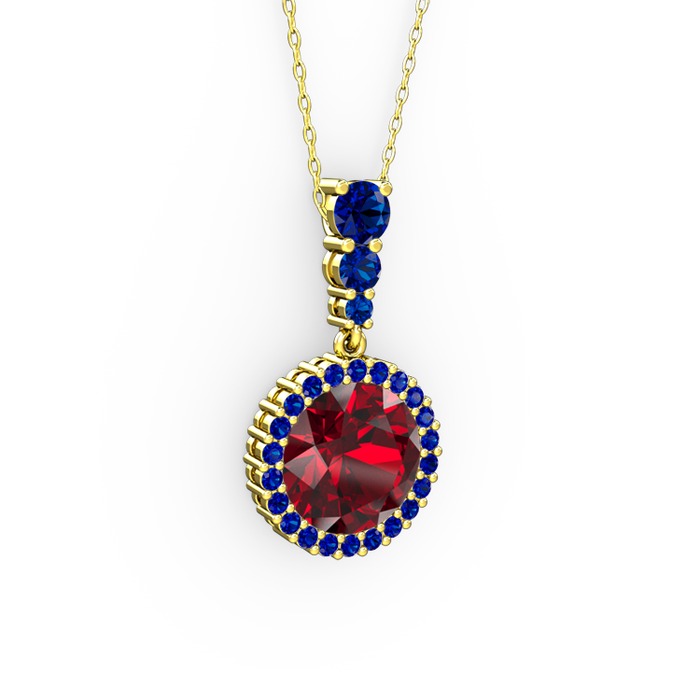 Garnet ve lab safir 14 ayar altın kolye (40 cm altın rolo zincir)