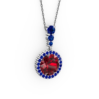Garnet ve lab safir 8 ayar beyaz altın kolye (40 cm gümüş rolo zincir)