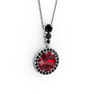 Garnet ve siyah zirkon 18 ayar beyaz altın kolye (40 cm gümüş rolo zincir)