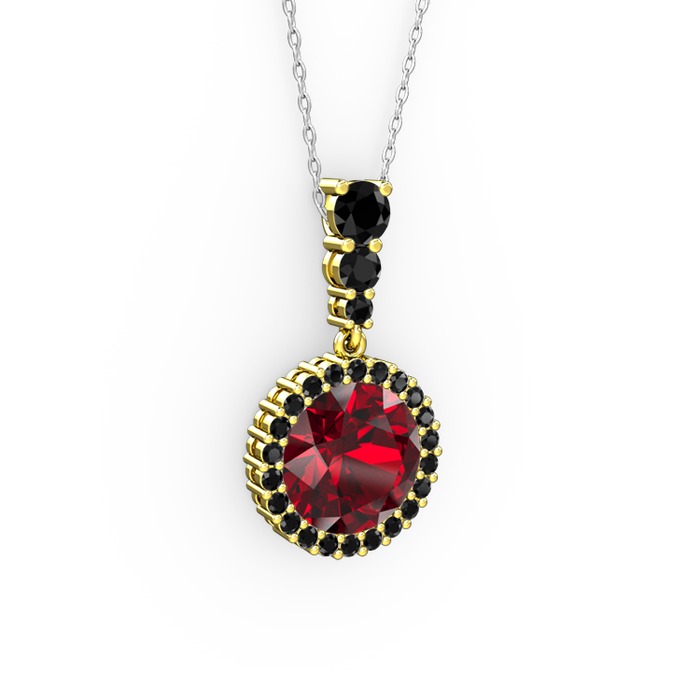 Garnet ve siyah zirkon 925 ayar altın kaplama gümüş kolye (40 cm beyaz altın rolo zincir)