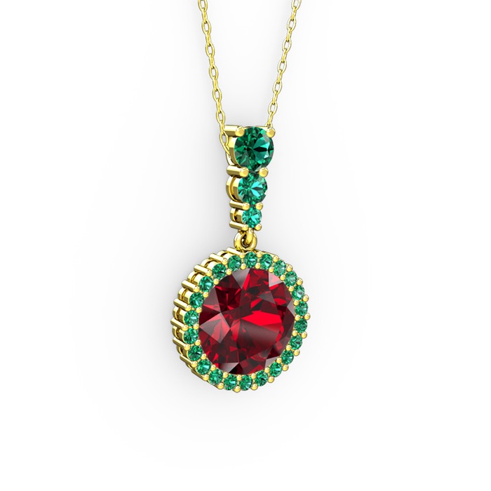 Garnet ve yeşil kuvars 18 ayar altın kolye (40 cm altın rolo zincir)