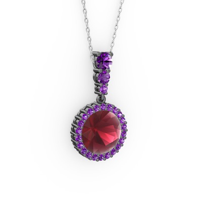 Kök yakut ve ametist 925 ayar siyah rodyum kaplama gümüş kolye (40 cm beyaz altın rolo zincir)