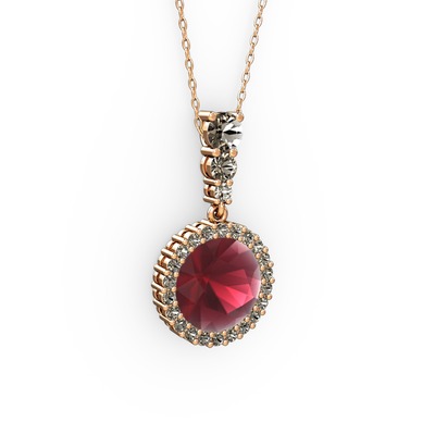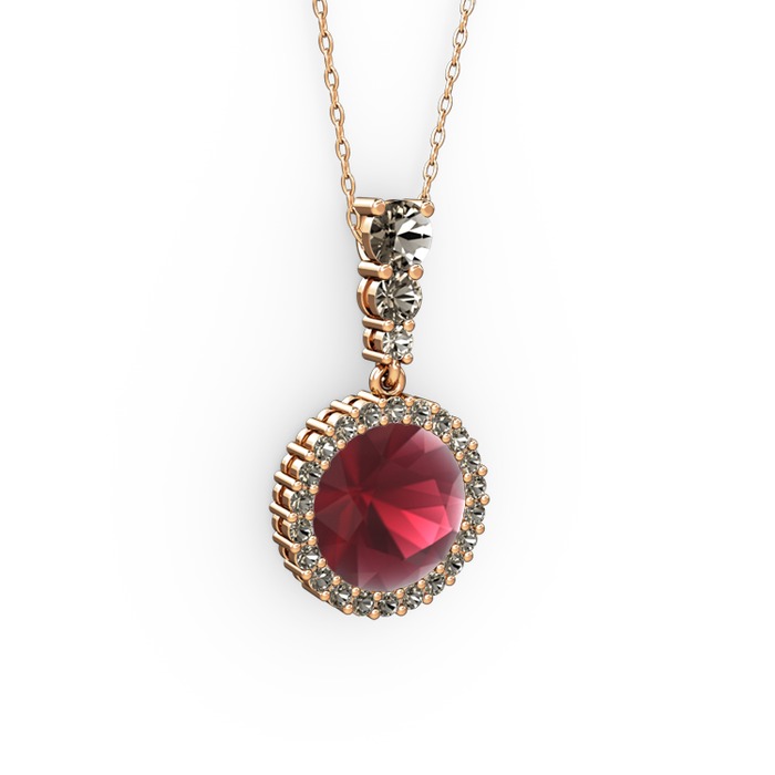 Kök yakut ve dumanlı kuvars 14 ayar rose altın kolye (40 cm gümüş rolo zincir)