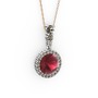 Kök yakut ve dumanlı kuvars 18 ayar beyaz altın kolye (40 cm rose altın rolo zincir)