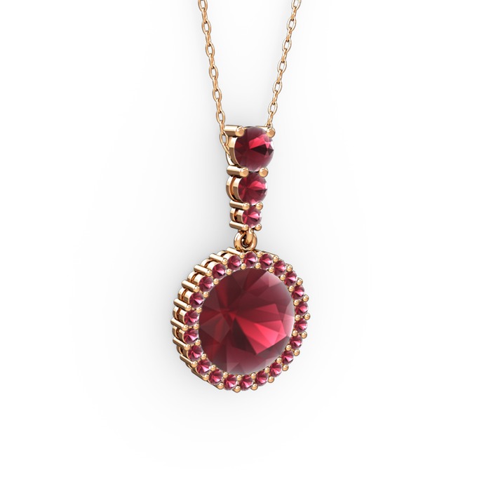 Kök yakut ve kök zümrüt 8 ayar rose altın kolye (40 cm gümüş rolo zincir)