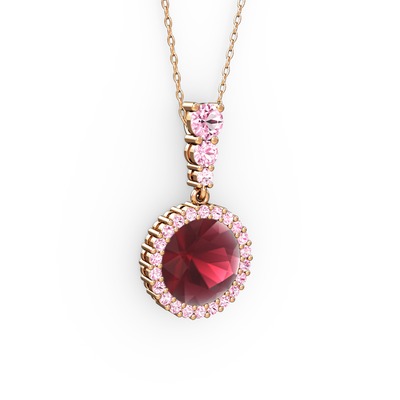 Kök yakut ve pembe kuvars 14 ayar rose altın kolye (40 cm rose altın rolo zincir)