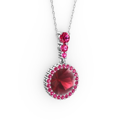 Kök yakut ve rodolit garnet 925 ayar gümüş kolye (40 cm beyaz altın rolo zincir)