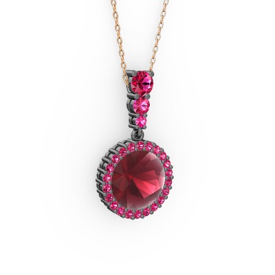 Kök yakut ve rodolit garnet 925 ayar siyah rodyum kaplama gümüş kolye (40 cm gümüş rolo zincir)