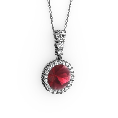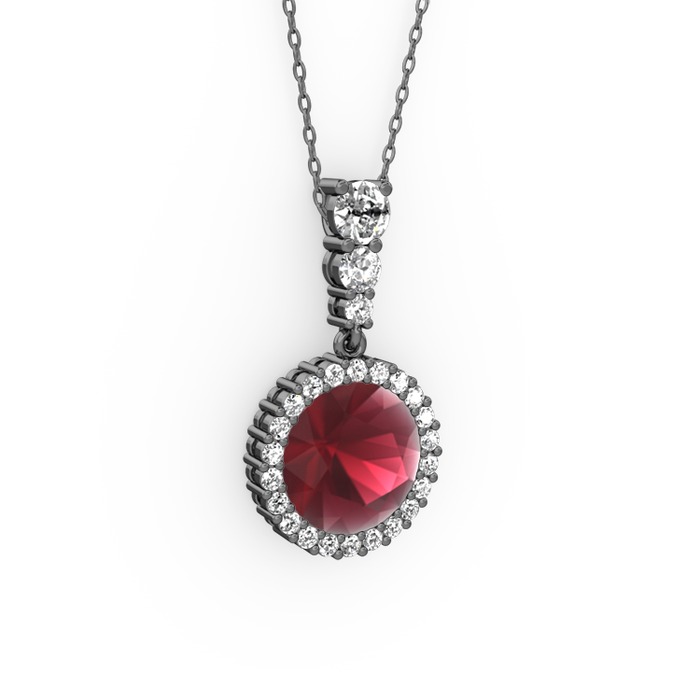 Kök yakut ve swarovski 925 ayar siyah rodyum kaplama gümüş kolye (40 cm gümüş rolo zincir)