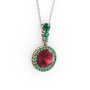 Kök yakut ve yeşil kuvars 14 ayar rose altın kolye (40 cm gümüş rolo zincir)