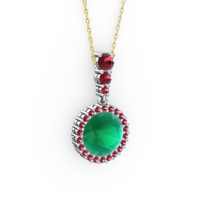 Kök zümrüt 8 ayar beyaz altın kolye (40 cm altın rolo zincir)