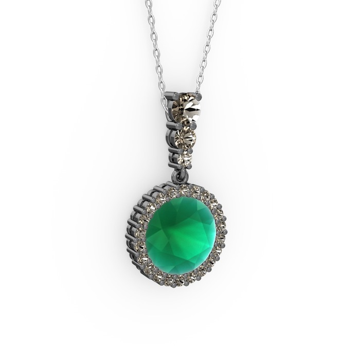 Kök zümrüt ve dumanlı kuvars 925 ayar siyah rodyum kaplama gümüş kolye (40 cm beyaz altın rolo zincir)