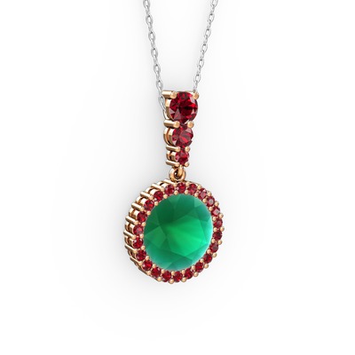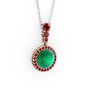 Kök zümrüt ve garnet 14 ayar rose altın kolye (40 cm beyaz altın rolo zincir)