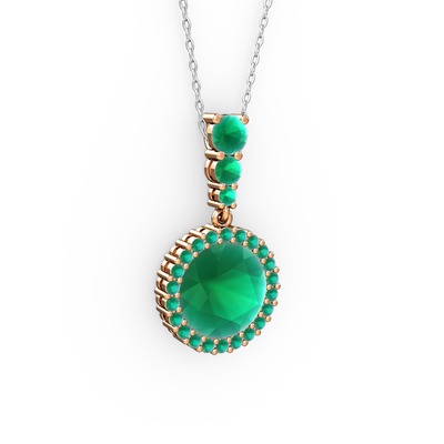 Kök zümrüt ve kök yakut 925 ayar rose altın kaplama gümüş kolye (40 cm beyaz altın rolo zincir)