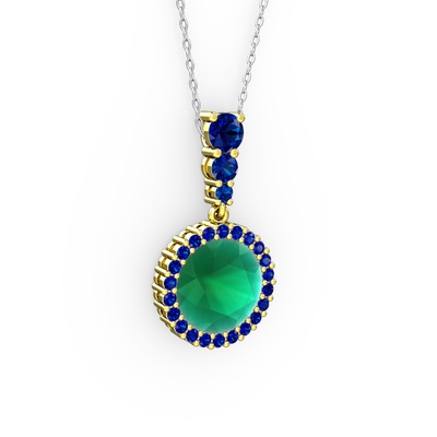 Kök zümrüt ve lab safir 14 ayar altın kolye (40 cm beyaz altın rolo zincir)