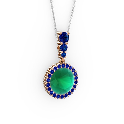 Kök zümrüt ve lab safir 18 ayar rose altın kolye (40 cm gümüş rolo zincir)
