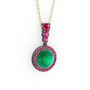Kök zümrüt ve rodolit garnet 925 ayar siyah rodyum kaplama gümüş kolye (40 cm altın rolo zincir)