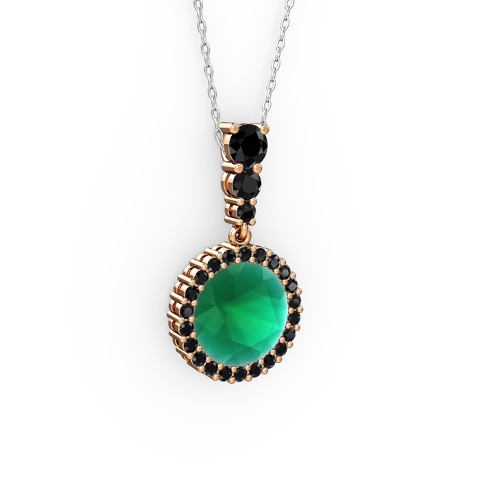 Kök zümrüt ve siyah zirkon 18 ayar rose altın kolye (40 cm beyaz altın rolo zincir)