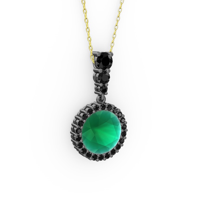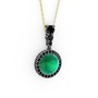 Kök zümrüt ve siyah zirkon 925 ayar siyah rodyum kaplama gümüş kolye (40 cm altın rolo zincir)