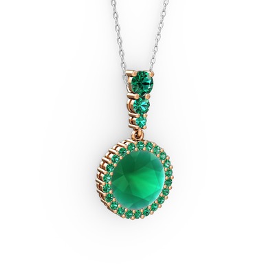 Kök zümrüt ve yeşil kuvars 18 ayar rose altın kolye (40 cm beyaz altın rolo zincir)