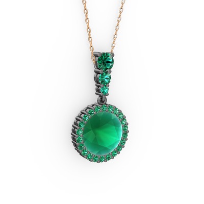 Kök zümrüt ve yeşil kuvars 925 ayar siyah rodyum kaplama gümüş kolye (40 cm gümüş rolo zincir)