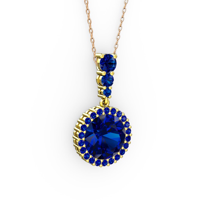 Lab safir 18 ayar altın kolye (40 cm rose altın rolo zincir)