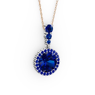 Lab safir 8 ayar beyaz altın kolye (40 cm rose altın rolo zincir)