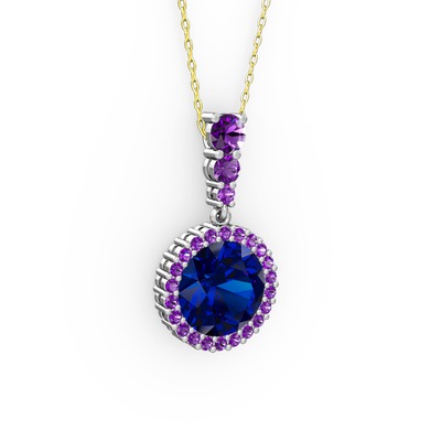 Lab safir ve ametist 925 ayar gümüş kolye (40 cm gümüş rolo zincir)