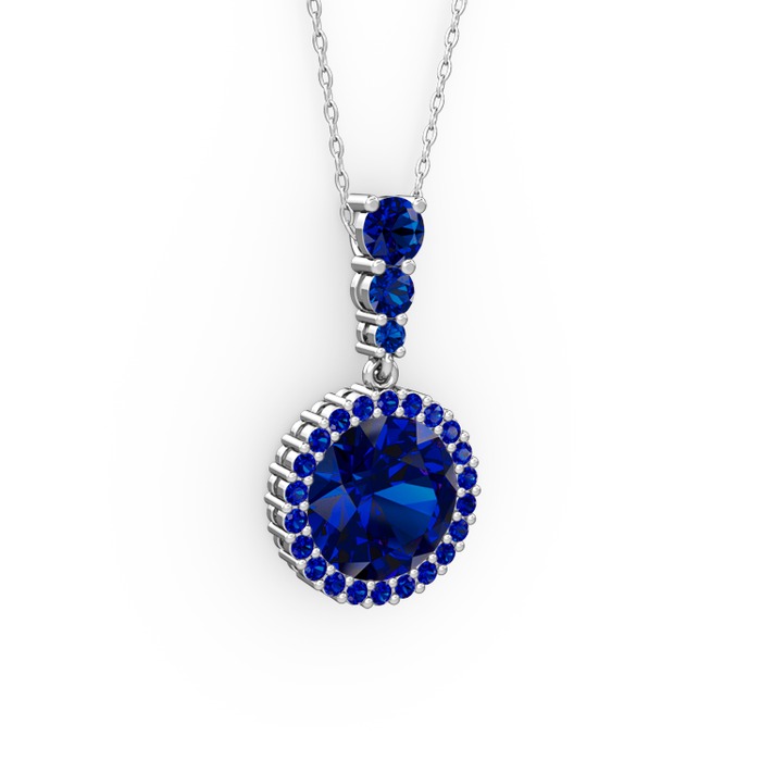 Lab safir 925 ayar gümüş kolye (40 cm gümüş rolo zincir)