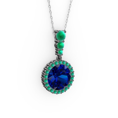 Lab safir ve kök yakut 925 ayar siyah rodyum kaplama gümüş kolye (40 cm beyaz altın rolo zincir)
