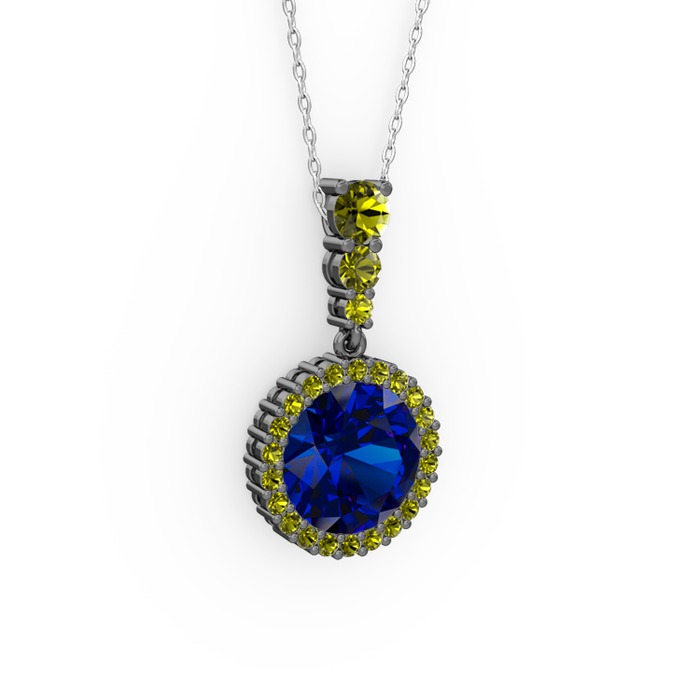 Lab safir ve peridot 925 ayar siyah rodyum kaplama gümüş kolye (40 cm gümüş rolo zincir)