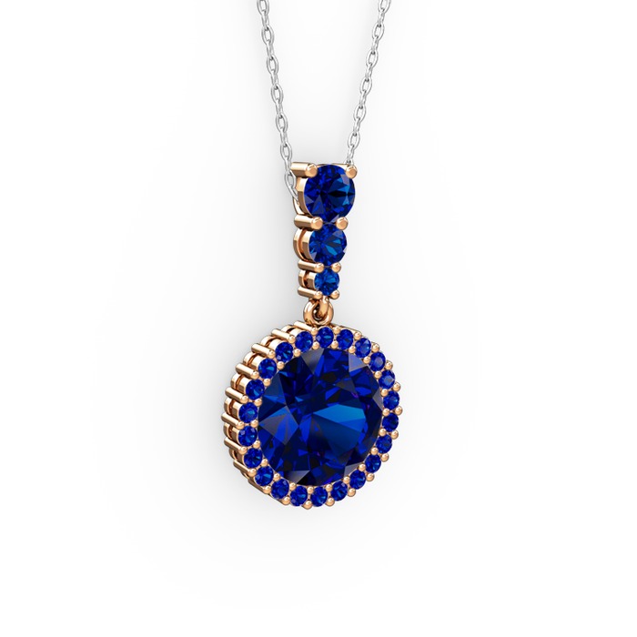 Lab safir 925 ayar rose altın kaplama gümüş kolye (40 cm gümüş rolo zincir)