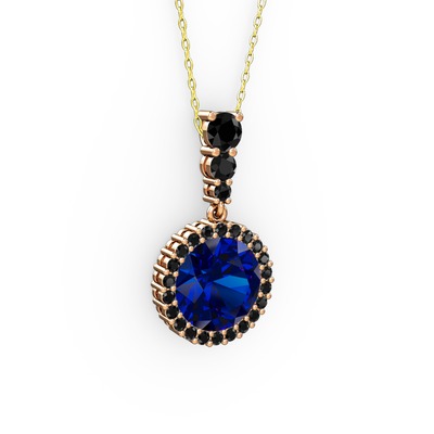 Lab safir ve siyah zirkon 8 ayar rose altın kolye (40 cm gümüş rolo zincir)