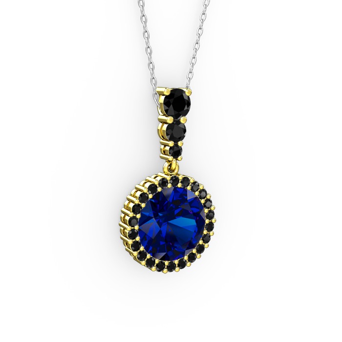 Lab safir ve siyah zirkon 925 ayar altın kaplama gümüş kolye (40 cm beyaz altın rolo zincir)